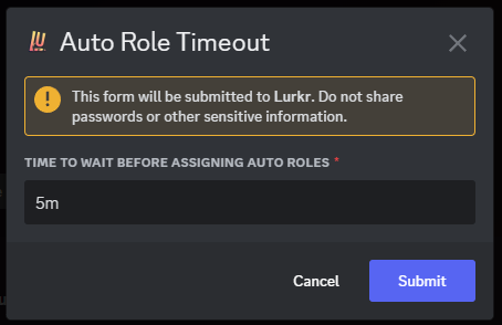 On Join roles are super useful in order to give new users certain roles, or to give users with special profile badges roles automatically! Lurkr also lets you set a timer before giving these roles so that your Discord Verification system doesn't immediately break!