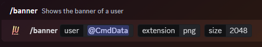 This command can be used to display the profile banner of yourself or of other users. You can change the size of the banner that is displayed and even change the format in which it's saved, useful for example for converting GIF banners to still images.